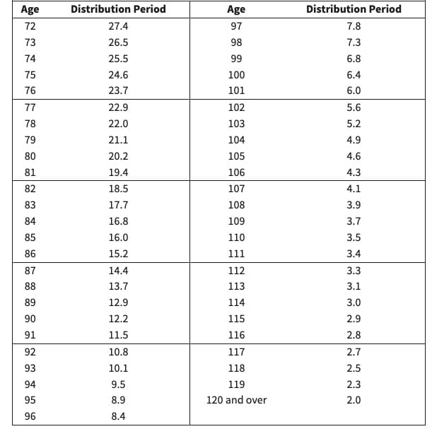 IRS has 3 tables to cover all scenarios when it comes to RMD distributions.